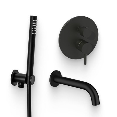 - Состав комплекта: {Верхний душ;Душевой гарнитур;Кронштейн для верхнего душа;Шланговое подключение}