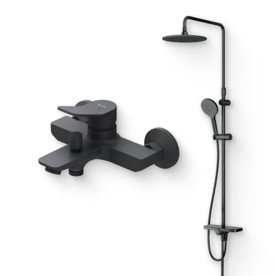 - Состав комплекта: {Смеситель для ванны с душем;Верхний душ;Душевой гарнитур;Излив;Настенный держатель}