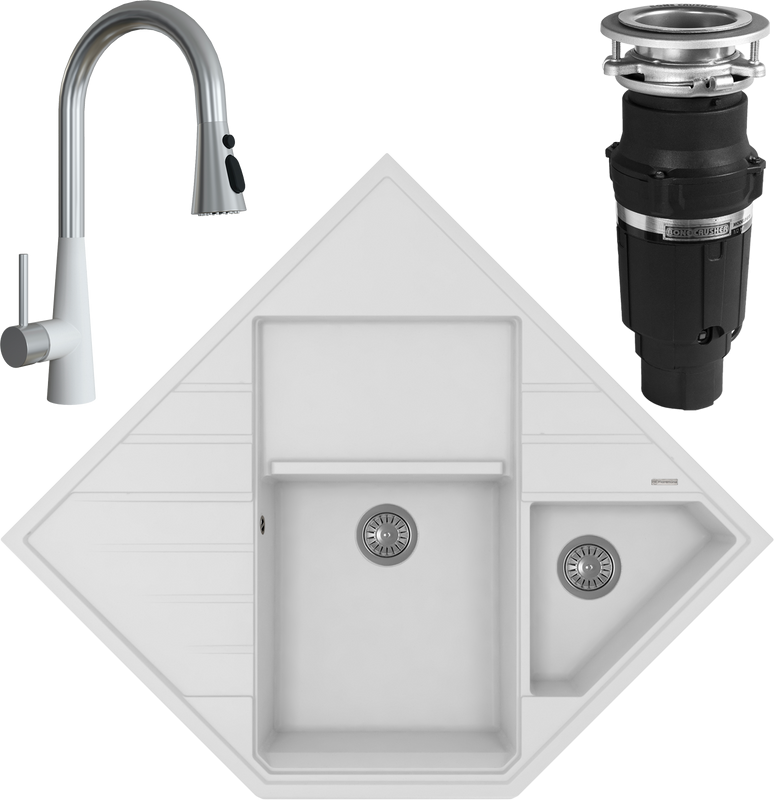 - Комплектация: Мойка кухонная Florentina Бомбей, жасмин; Смеситель для кухни Florentina Вита Pro FL, жасмин; Измельчитель отходов Bone Crusher BC 610-AS