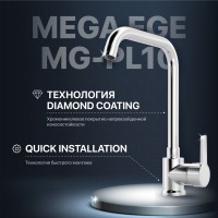 • Комплектация: Мойка кухонная GranFest Quadro GF-Q561, иней; Смеситель для кухни MEGA Ege MG-PL10 хром