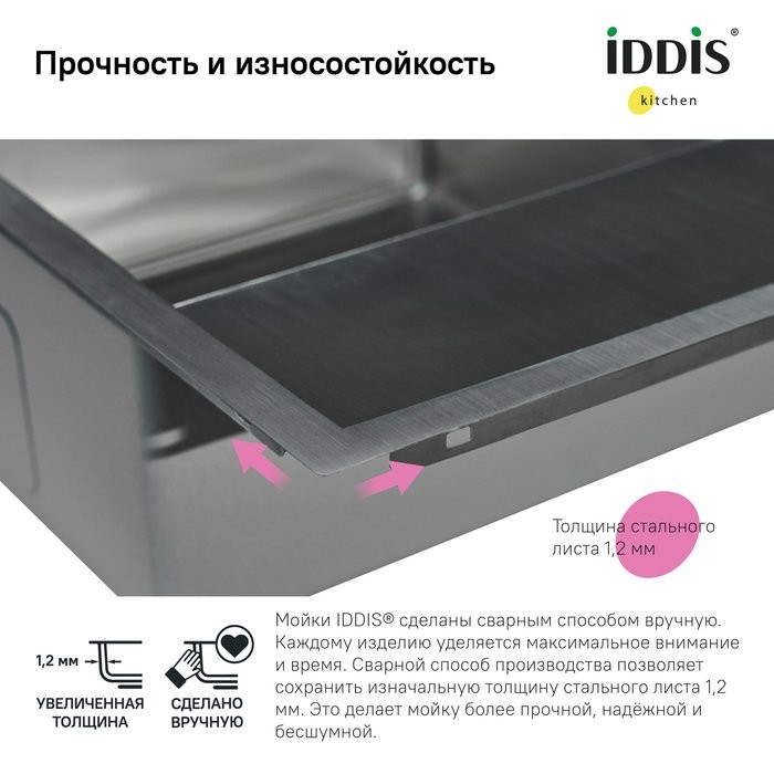 - Комплектация: Мойка кухонная IDDIS Haze HAZ78SLi77, L, сатин; Смеситель для кухни IDDIS Male MALBN00i05 сатин
