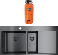 Комплект Мойка Omoikiri Akisame 100-2-GM-L вороненая сталь + Измельчитель Nagare slim 900