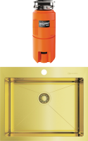 • Комплектация: Мойка кухонная Omoikiri Akisame 59-LG 4973082, светлое золото; Измельчитель отходов Omoikiri Nagare slim 500