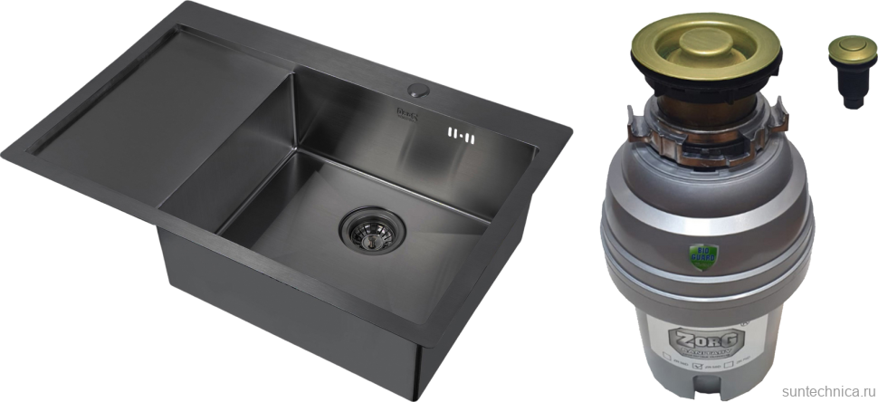 Комплект Мойка Zorg Inox PVD 7851 R grafit + Измельчитель ZR-75 D BRONZE
