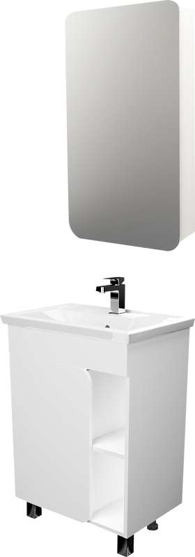 - Комплектация: Тумба под раковину 1MarKa Nuvo 70Н, напольная, белый глянец; Мебельная раковина Kirovit Фостер, 70; Зеркало-шкаф 1MarKa Nuvo 50