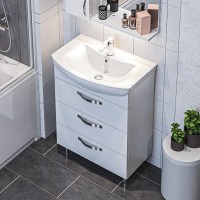 - Комплектация: Тумба под раковину 1MarKa Вита 65Н, с 3 ящиками, белый глянец; Мебельная раковина Santek Балтика, 65; Зеркало 1MarKa Вита, 65 белый глянец