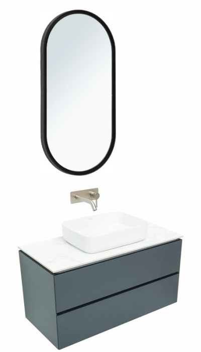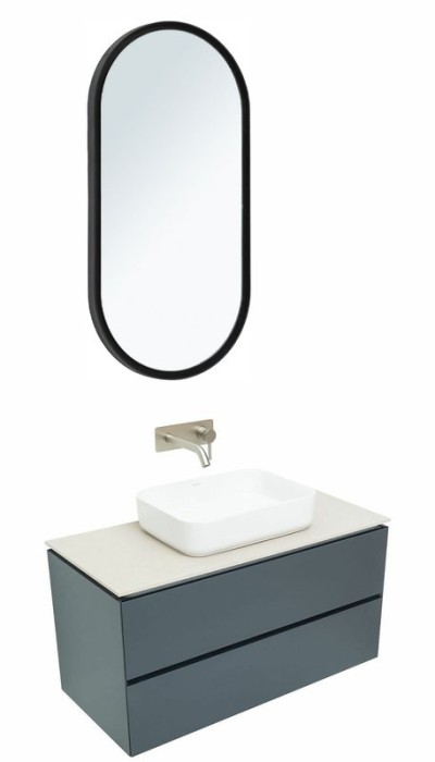 - Комплектация: Тумба под раковину Allen Brau Infinity 100, подвесная, антрацит матовый; Столешница в ванную под раковину Allen Brau Infinity 100, графит; Накладная раковина Allen Brau Fantasy Quad, 50x36, белая матовая; Зеркало Allen Brau Infinity 50х100, овальное, с по