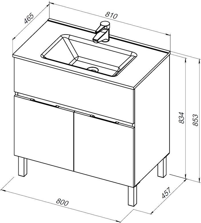 - Ширина основания с раковиной: 81.5