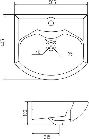 - Ширина основания с раковиной: 50.5