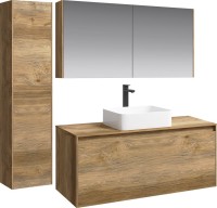 • Комплектация: Тумба под раковину Aqwella 5 stars Mobi 120 дуб балтийский, без сменных элементов; Сменный элемент Aqwella 5 stars Mobi 120 для тумбы, дуб балтийский; Накладная раковина Dreja Джой MYJOYS; Зеркало-шкаф Aqwella 5 stars Mobi 120 дуб балтийский