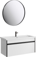 - Комплектация: Тумба под раковину Aqwella Urban, 100, подвесная, белая глянцевая; Мебельная раковина Kirovit Фостер, 100; Зеркало круглое Aqwella Fargo, черное, 80 см
