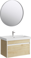 - Комплектация: Тумба под раковину Aqwella Urban, 80, подвесная, дуб давос; Мебельная раковина Sanita luxe Fest, 80; Зеркало круглое Aqwella Fargo RM, 80 белое