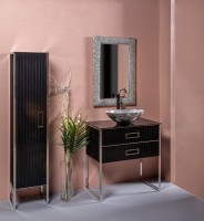 - Комплектация: Тумба под раковину Armadi Art Monaco 80, для столешницы черная, хром; Столешница в ванную под раковину Armadi Art Monaco 81, черная; Накладная раковина Armadi Art NeoArt, хрустальная, серебро; Зеркало Armadi Art NeoArt Aura, 60 серебро с подсветкой