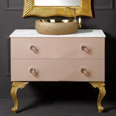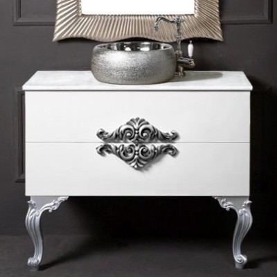 - Комплектация: Тумба под раковину Armadi Art NeoArt 100, белая; Накладная раковина Armadi Art NeoArt, серебро; Ножки для мебели Armadi Art NeoArt 35 см, золото, 2 шт.; Зеркало Armadi Art NeoArt, золото; Ручка для мебели Armadi Art NeoArt Moon золото