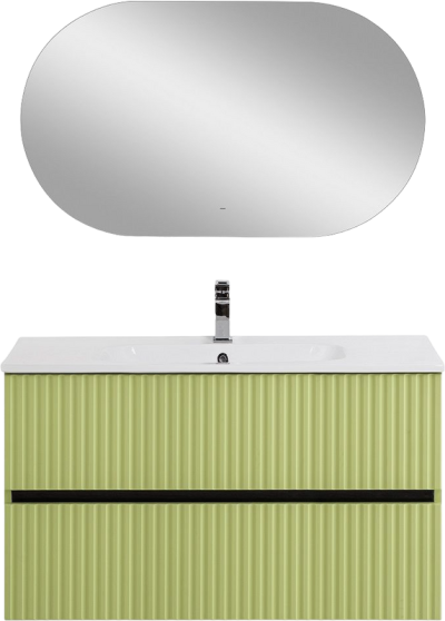 - Комплектация: Тумба под раковину Art&Max Bianchi 90, подвесная, оливковая; Мебельная раковина Art&Max Bianchi 90, черная матовая; Зеркало Art&Max Genova, 90х80 с подсветкой