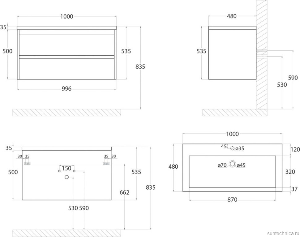 - Комплектация: Тумба под раковину Art&Max Family-M 100, подвесная, iron stone; Мебельная раковина Art&Max AM-LAV, 100; Зеркало Art&Max Latina, 100х80