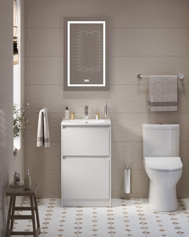 - Комплектация: Тумба под раковину BelBagno Kraft 39 50, напольная, bianco opaco; Мебельная раковина BelBagno BB-8099-3-50, глянцевая белая; Зеркало BelBagno Kraft, 80x50, с подсветкой, с подогревом, сатин