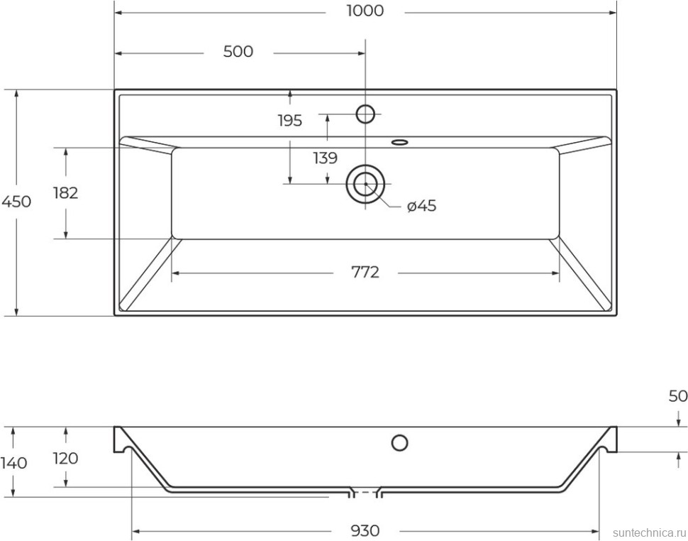 - Глубина основания с раковиной, см: 45 см