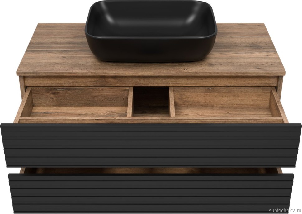 - Комплектация: Тумба под раковину Brevita Dakota 100, подвесная, дуб галифакс олово, черный кварц; Накладная раковина Melana MLN-320353MB, матовая черная; Зеркало Brevita Dakota, 80 черное