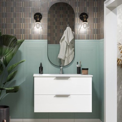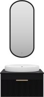 - Комплектация: Тумба под раковину Brevita Enfida 70, подвесная, черная; Накладная раковина DIWO Самара, 62 см, накладная чаша на столешницу, фаянсовая, овальная, белая; Зеркало Brevita Saturn, 50х150 черное