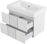 - Комплектация: Тумба под раковину Brevita Vega 80, подвесная, белая, золото; Мебельная раковина Dreja Q 80; Зеркало Brevita Steffany, 75, белое