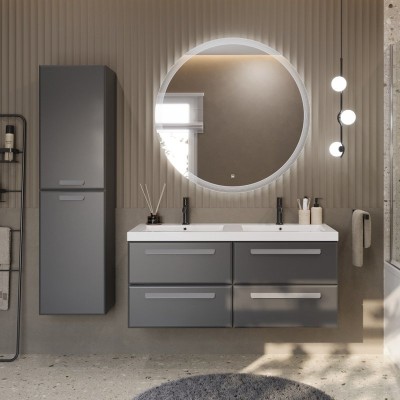 - Комплектация: Тумба под раковину Cezares Eco 120, 4 ящика, grafito, без ручек; Мебельная раковина Cezares Eco, 120 см, двойная; Зеркало Cezares 40312, 90х120 c LED-подсветкой touch system; Ручка для мебели Cezares Eco RS156SG.3/320, сатиновое золото