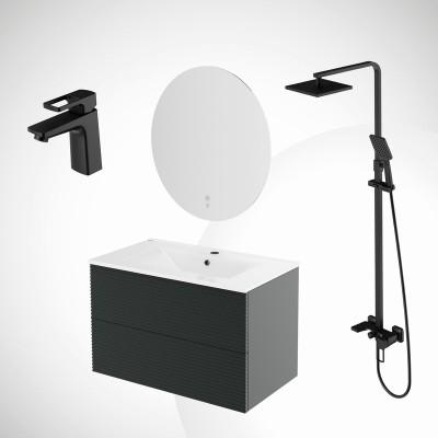 - Комплектация: Тумба под раковину Cezares Molveno 46, 100 legno grigio; Столешница в ванную под раковину BelBagno KEP-100-MNO, marmo nero opaco; Накладная раковина BelBagno BB1386, накладная; Зеркало BelBagno