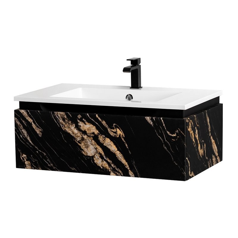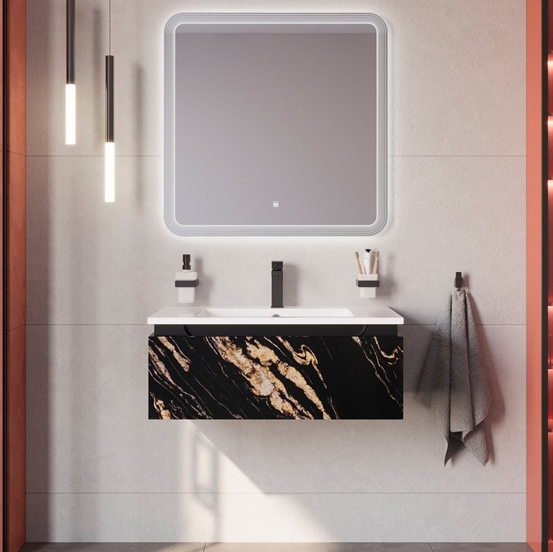 - Комплектация: Тумба под раковину Cezares Slider 80, подвесная, 1 ящик, черный фьюжн; Мебельная раковина Cezares Slider 80, белая матовая; Зеркало Cezares Duet, 80х80, с подсветкой