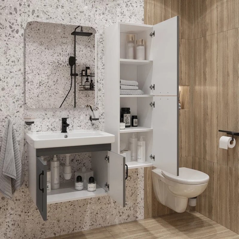- Цвет тумбы: Серый