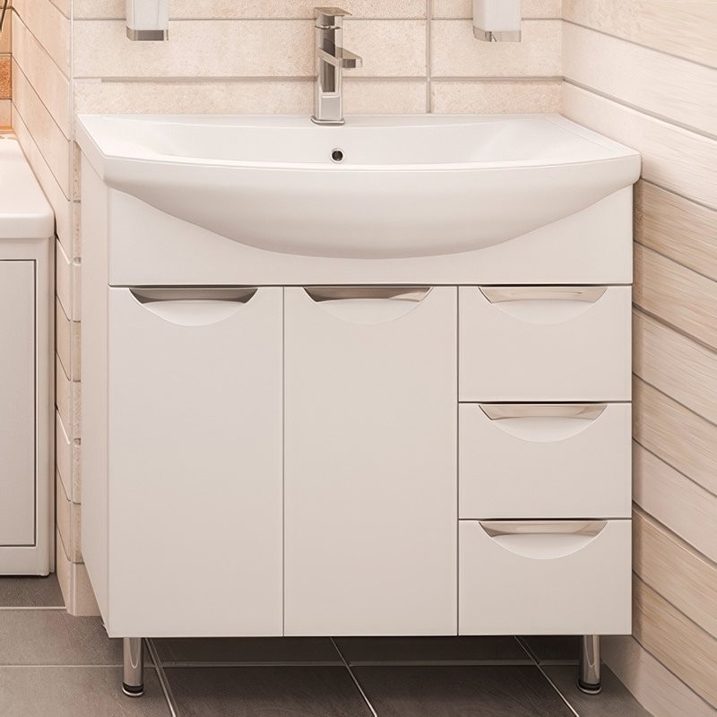 - Комплектация: Тумба под раковину Emmy Милли 80, белая глянцевая, 3 ящика; Мебельная раковина Santek Балтика 1WH501524, 80; Зеркало Emmy Милли, 80 с подсветкой