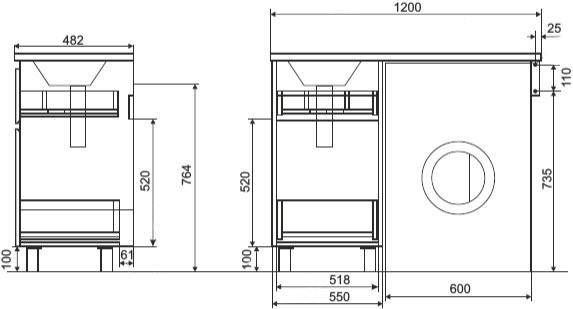 - Расположение столешницы раковины: Слева