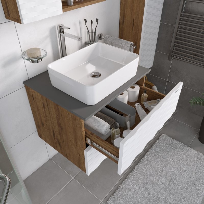 - Комплектация: Тумба под раковину Grossman Альба 65, веллингтон, белая; Накладная раковина Grossman GR-3020 50; Зеркало Grossman Alba, 65 веллингтон, белое
