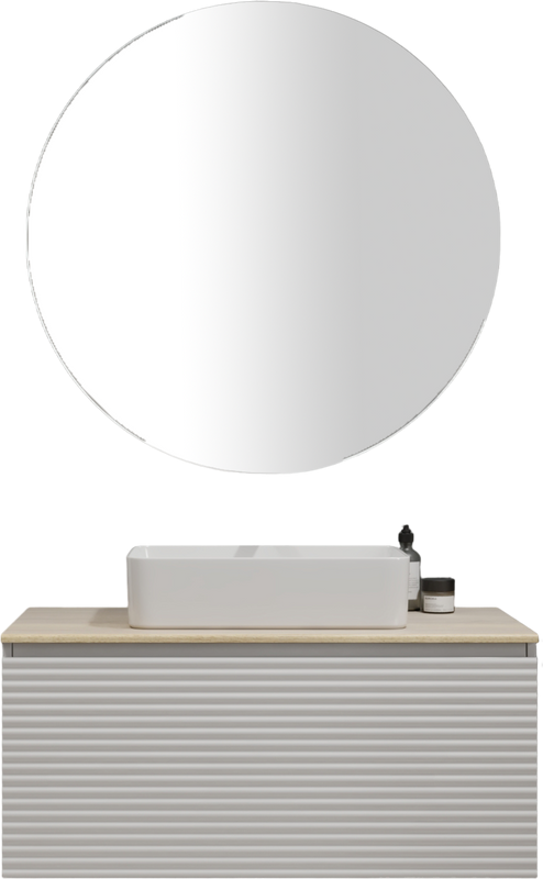 - Комплектация: Тумба под раковину Jorno Cossety 100, белая, дуб мавелла голд; Накладная раковина Melana MLN-7050Н; Зеркало круглое Raval Solo, 100, с подсветкой и часами