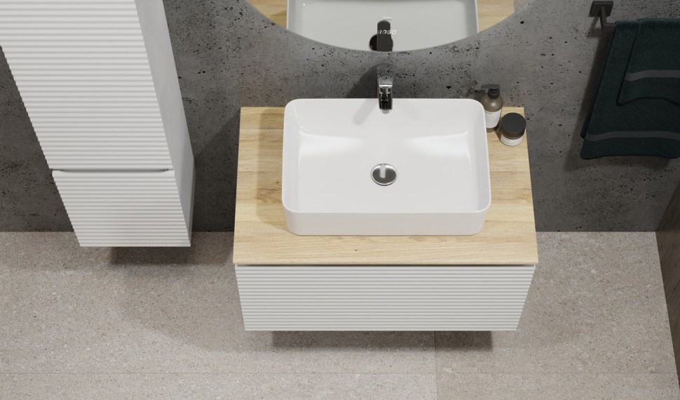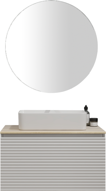 - Комплектация: Тумба под раковину Jorno Cossety 80, белая, дуб мавелла голд; Накладная раковина Melana MLN-7050Н; Зеркало круглое Jorno Solo, 77 с подсветкой и часами