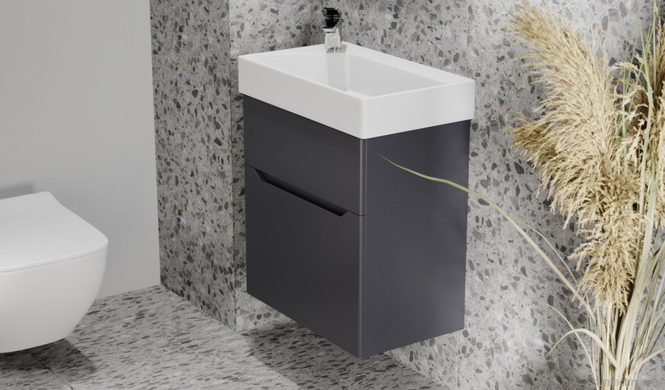 - Комплектация: Тумба под раковину Jorno Folk 55, подвесная, антрацит; Мебельная раковина Raval Slim Synergy, 55; Зеркало круглое Jorno Shine, 65, с подсветкой