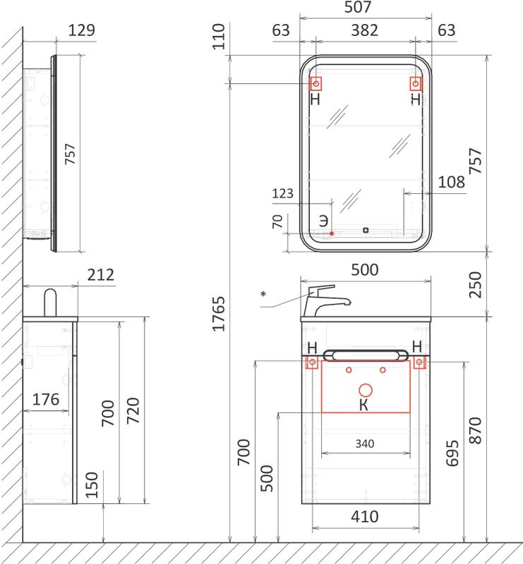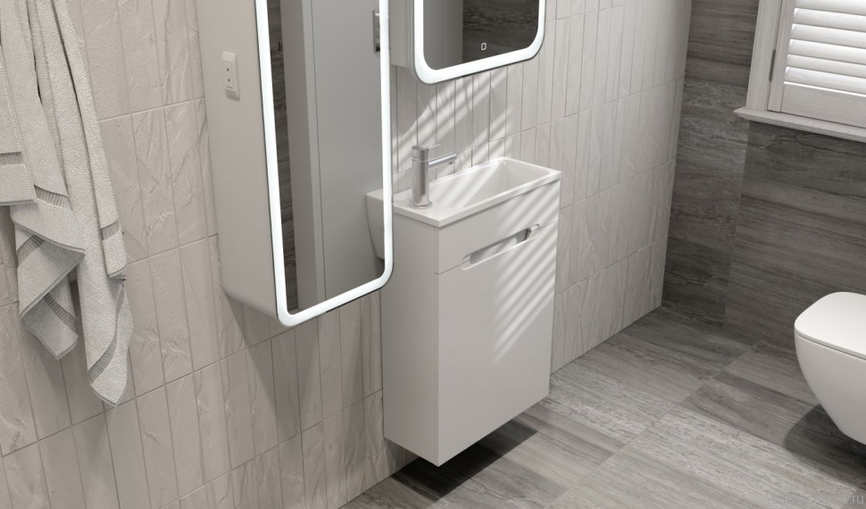 • Комплектация: Тумба под раковину Jorno Modul, 50; Раковина маленькая в туалет Madera Modul, 50; Зеркало-шкаф Jorno Modul, 50, с подсветкой