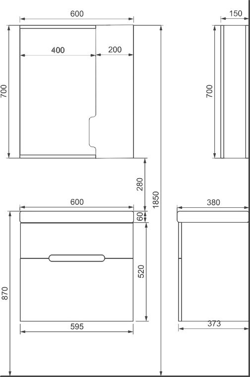 - Комплектация: Тумба под раковину Jorno Moduo Slim, 60, подвесная; Мебельная раковина Cersanit Moduo slim, 60; Зеркало Jorno Moduo Slim, 60