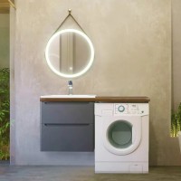 - Комплектация: Тумба под раковину Jorno Wood, 60, серая; Мебельная раковина Madera Modul, 65; Столешница в ванную под раковину Jorno Wood, 122, темное дерево, на стиральную машину; Зеркало круглое Jorno Wood, 50, с подсветкой, кожаный ремень