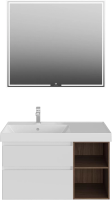- Комплектация: Тумба под раковину KERAMA MARAZZI Cubo 90, левая, подвесная, с ящиками и полкой, белая матовая, структурированный орех; Мебельная раковина KERAMA MARAZZI Cubo, 90 L; Зеркало KERAMA MARAZZI Mio 90, с подсветкой; Шкаф пенал для ванной KERAMA MARAZZI Cubo 16