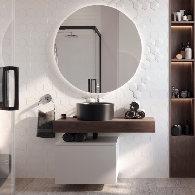- Комплектация: Тумба под раковину KERAMA MARAZZI Piano 85, подвесная, дымчатый вяз; Мебельная раковина KERAMA MARAZZI Piano 85; Зеркало KERAMA MARAZZI Cono, 42 черное матовое