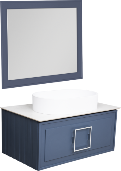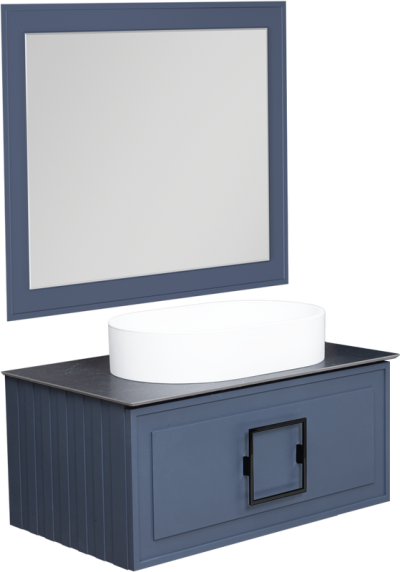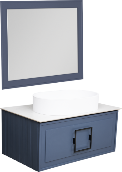 - Комплектация: Тумба под раковину La Fenice Cubo 80, синяя; Столешница в ванную под раковину La Fenice Granite FNC-03-VS03-80, черный мрамор; Накладная раковина La Fenice Senso Matt; Зеркало La Fenice Cubo, 80х60, синее матовое; Ручка для мебели La Fenice Cubo FNC-04-CU