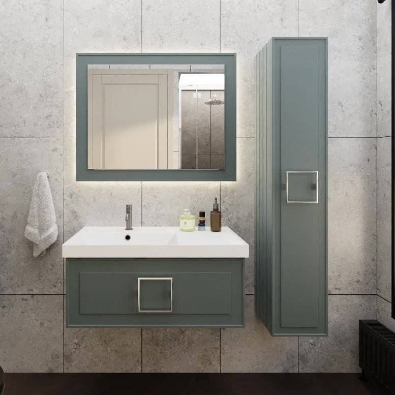 - Комплектация: Тумба под раковину La Fenice Cubo 90, серая; Мебельная раковина La Fenice Cubo 90, L; Зеркало La Fenice Cubo, 100х80, серое матовое; Ручка для мебели La Fenice Cubo FNC-04-CUB-C- 168 хром