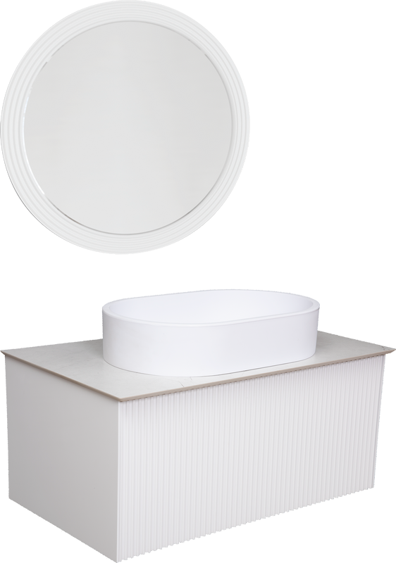 - Комплектация: Тумба под раковину La Fenice Terra 80, белая; Столешница в ванную под раковину La Fenice Granite FNC-VS01-TER-80, белый мрамор; Накладная раковина La Fenice Senso Matt; Зеркало круглое La Fenice Terra, 80 белое матовое