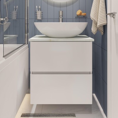 - Комплектация: Тумба под раковину Misty Ингрид 60, напольная, белая эмаль; Мебельная раковина Madera Alice, 58; Зеркало-шкаф Misty Аура 60