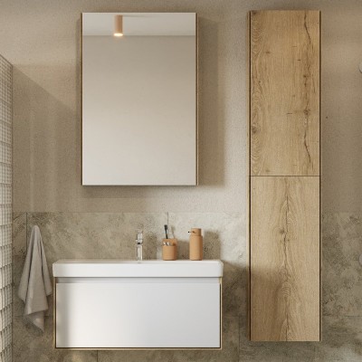 - Комплектация: Тумба под раковину Onika Дайлер 80, подвесная, белая, дуб сонома; Мебельная раковина Kirovit Фостер, 80; Зеркало круглое Onika Сола, 80 с подсветкой