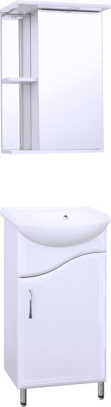 - Комплектация: Тумба под раковину Onika Милтон 45, подвесная, белая; Раковина маленькая в туалет Kirovit Фостер 450; Зеркало-шкаф Onika Венеция У 42