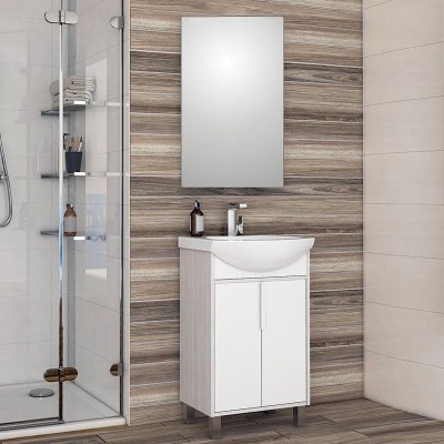 - Комплектация: Тумба под раковину Onika Милтон, 55 напольная, белая; Мебельная раковина Rosa Уют 55; Зеркало-шкаф Onika Венеция У 50