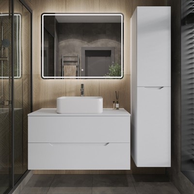 - Комплектация: Тумба под раковину со столешницей Orange Line 100, подвесная, 2 ящика, матовая белая; Накладная раковина Orange B05 B05-500W, 50 см белый глянец; Зеркало Orange Nature ON-100ZE, с LED подсветкой