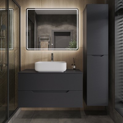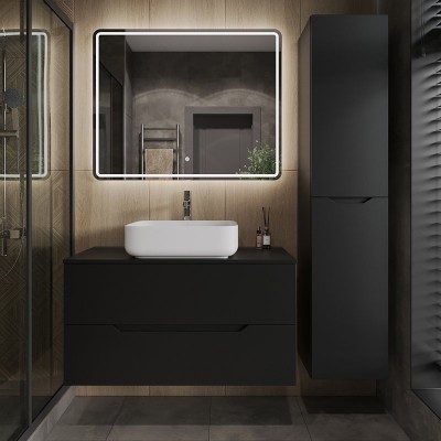 - Комплектация: Тумба под раковину со столешницей Orange Line 100, подвесная, 2 ящика, матовая черная; Накладная раковина Orange B02 B02-460W, белый глянец; Зеркало Orange Nature ON-100ZE, с LED подсветкой