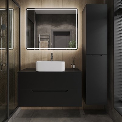 - Комплектация: Тумба под раковину со столешницей Orange Line 100, подвесная, 2 ящика, матовая черная; Накладная раковина Orange B05 B05-500W, 50 см белый глянец; Зеркало Orange Nature ON-100ZE, с LED подсветкой